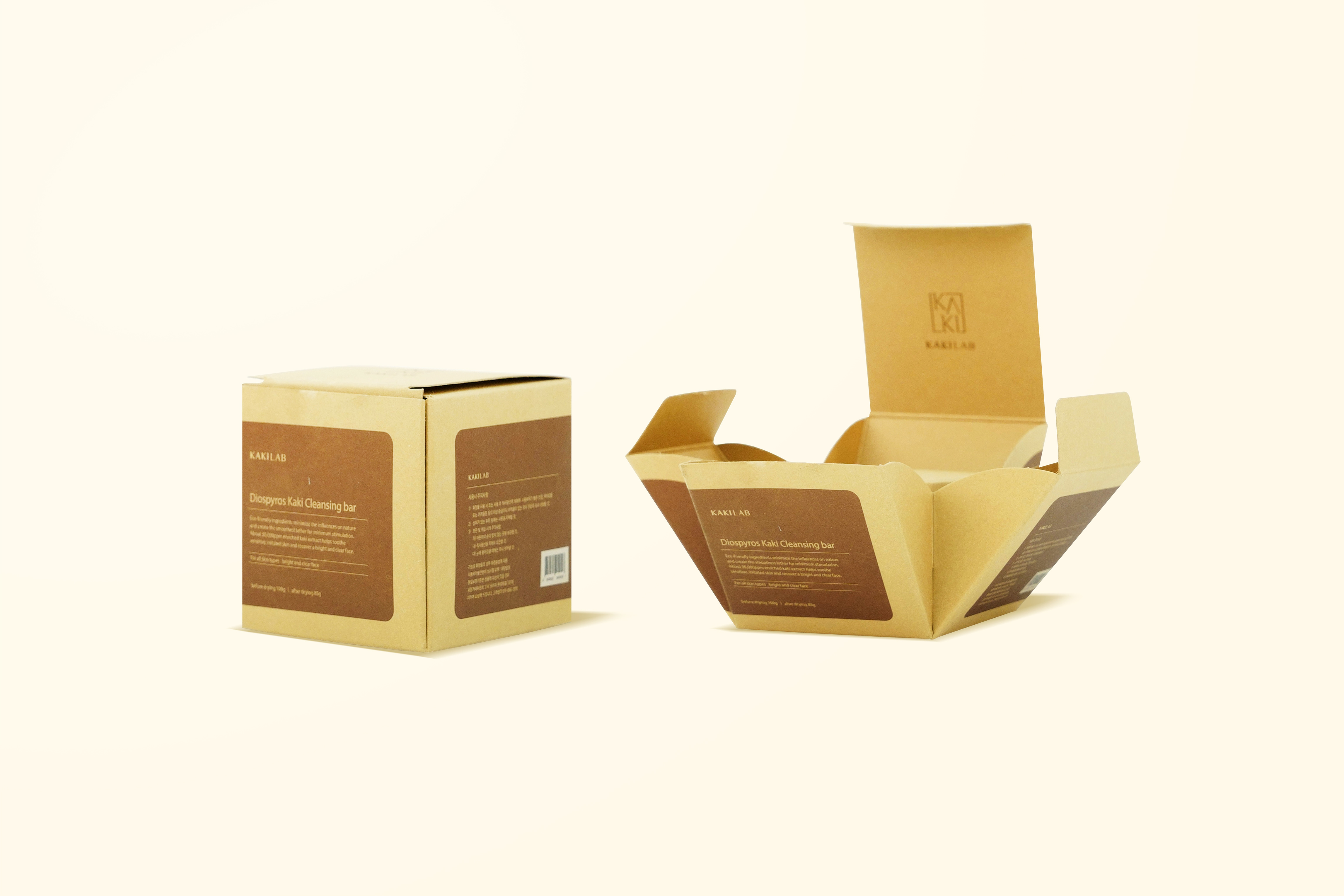 카키랩 주식회사 클렌징바 패키지 제작 박스형태 커스텀형 종이원단 마테리카 C07 360g 인쇄사양 양면 원색 4도 사이즈 72*72*72 컨셉 자연추출물 비누를 담은 패키지입니다. 제품 컨셉에 맞춰 무염소 친환경 종이를 이용하여 공업용 풀 접착 없이 완전조립형으로 제작하였습니다. 문의포함