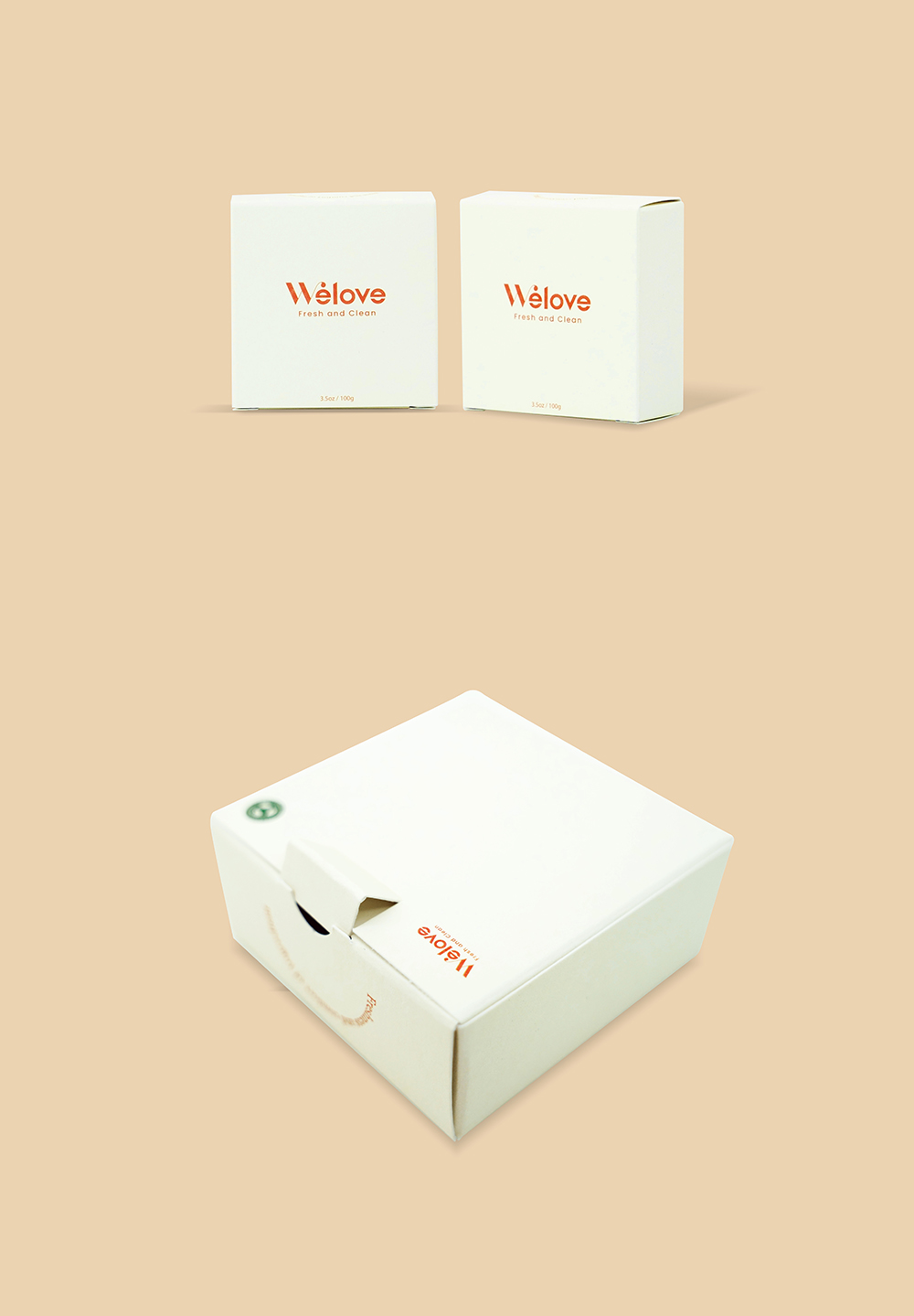 맷컴퍼니 위러브 비누 패키지 제작 박스형태 B형 맞뚜껑 종이원단 올드밀 엑스트라화이트 300g 인쇄사양 원색 4도인쇄 사이즈 70*30*70 컨셉 인쇄로는 표현할 수 없는 펠트무늬처리된 올드밀 종이는 여타 다른 인쇄지에 비해 보다 세련된 느낌을 연출할 수 있어 심플하게 표현된 디자인으로도 고급스러움을 나타낼 수 있습니다. 문의포함