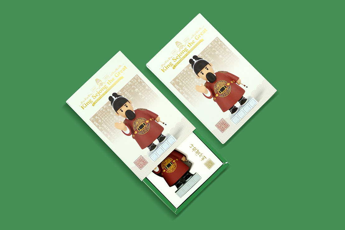 함께 제작한 피규어 패키지와 형태를 동일하게 유지하되 조립식 구조로 바꾸어 제작하였습니다. 케이스 상단부에 여백을 두어 디자인적인 요소를 녹여낼 수 있도록 구조를 설계하였으며, 슬리브 개봉 후 자칫 밋밋해보일 수 있는 스펀지 하단부에 실크인쇄를 통해 제품의 아이덴티티를 표현하였습니다.