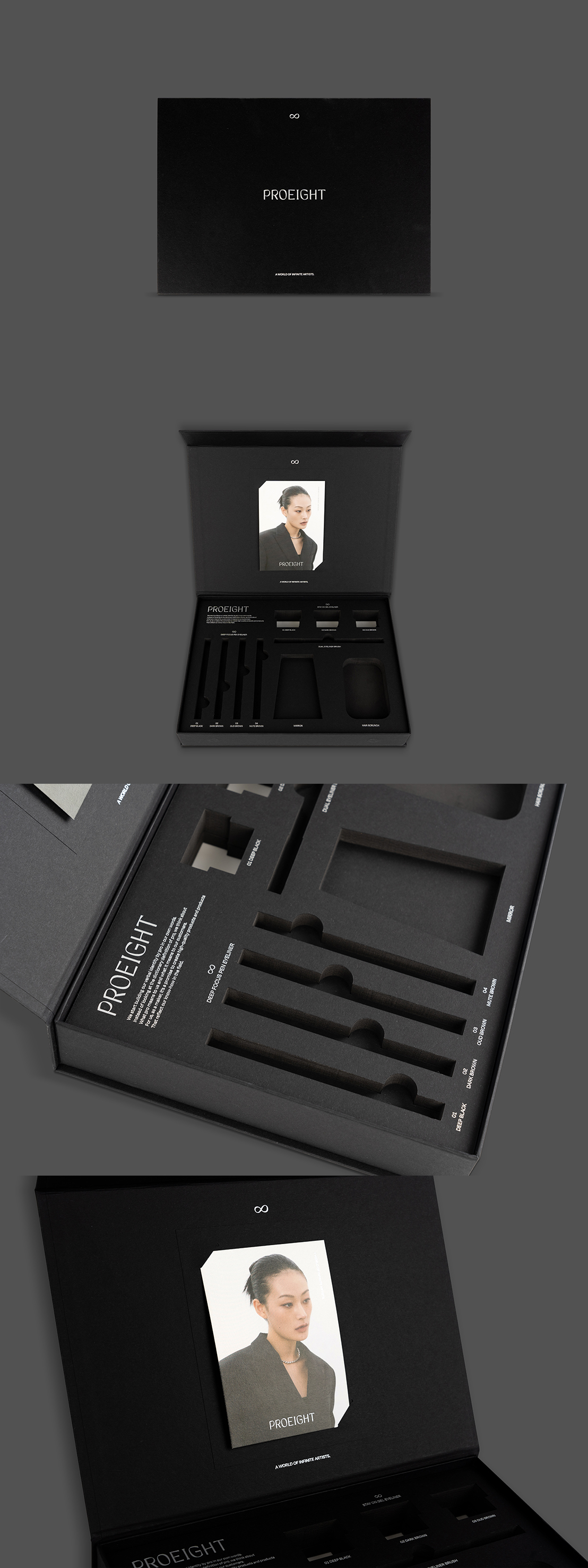 프로에잇 시딩키트 패키지 제작 박스형태 표지바리 종이원단 엔틱블랙 120 인쇄사양 무광은박 사이즈 270*190*50 컨셉 심플하게 고급스러운 느낌으로 블랙컬러의 지류와, 은박 가공만으로 제작 된 패키지 입니다. 문의포함
